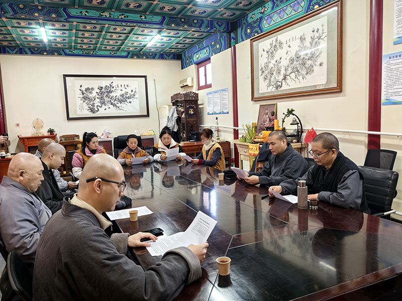 并实地督导寺院严格落实中国佛教协会各项规章制度,规范宗教活动、教职人员与场所管理,确保各项工作依规有序开展。与会人员集中学习了国务院总理李强3月5日在十四届全国人大四次会议上所作政府工作报告中关于宗教工作的重要论述精神,紧扣“学守重树”主题,传达学习了中佛协、省佛协下发的规章制度及相关通知精神,进一步强化法治意识、戒律意识与责任担当。