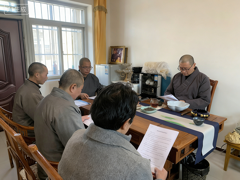 检查期间,寂禅法师对四处场所的活动实施方案、学习心得、会议记录、整治整改台账等材料逐项核查,并结合实际提出针对性指导建议。