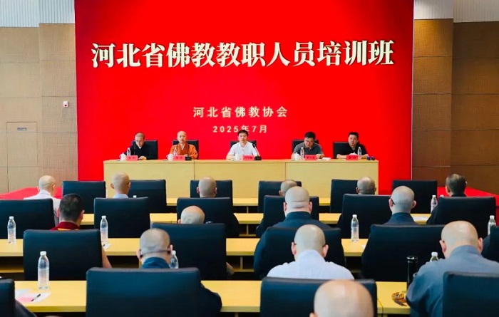 2025年7月15日上午,河北省佛教教职人员培训班在邯郸开班,来自全省各市的佛教教职人员70余人参加培训。开班仪式在庄严的国歌声中拉开序幕,全体人员庄严肃立,齐声高唱国歌。省委统战部派驻省佛协秘书长讲话,邯郸市委统战部副部长、民宗局党组书记、局长致欢迎词,省佛协常务副会长作开班动员讲话,邯郸市民宗局三级调研员出席。开班仪式由省佛协副会长、邯郸市佛协会长主持。