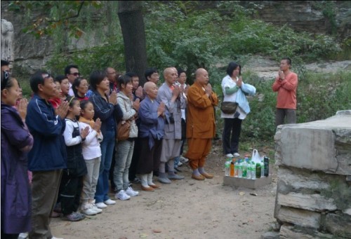 佛教资讯网讯 2009年10月6号,真广法师率保定Q群佛友朝礼团部分成员朝礼涞水广华寺,受到亲如法师和能连法师的热情招待,真广法师在午斋后为大家讲解了寺院的由来,大家法喜充满。下午又到龙泉村考察佛教金山寺,并在千佛塔前一起诵经礼拜。