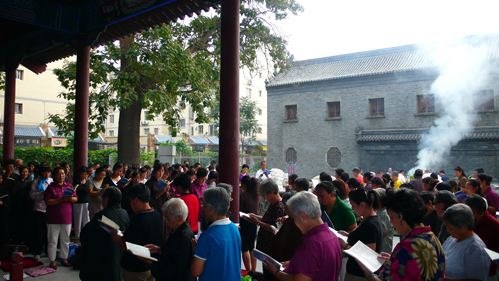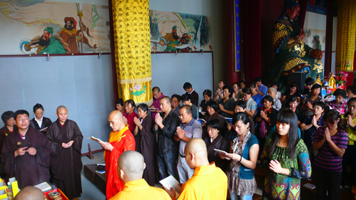 系念法会从下午15点开始一直持续到18点半,由道谦法师主法。