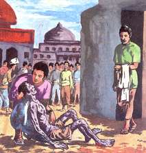 至年十四。启王出游。欲观施为。王敕令左右百官导从。始出城东门。天帝化作病人。身瘦腹大。倚门壁而喘息。太子问曰。此为何人。其仆曰。病人也。何谓为病。对曰。凡病者。皆由风寒。或热或冷。此人必以饮食不节卧起无常。故得斯病。太子曰。一何苦哉。吾处富贵。饮食快口。亦有不节。当复有病。与此何异。即回车还。悲念人生俱有此患。岂以豪强。独得免耶。遂忧不食。自念不能婴此病也。王问其仆。太子出游。宁不乐乎。对曰。逢见病人。以此不悦。王即增五百妓女。昼夜娱乐之。王心愁忧。恐其学道。数年小差。即复白王。闭在宫中。其日致久。思欲出游。王不忍拒。预敕国中。太子当出。无令疾病诸不洁净在道侧也
