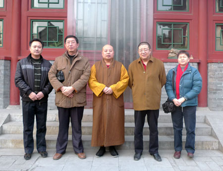 2009年3月1日下午,“佛教在线”总干事安虎生先生一行抵达保定市真觉禅寺,再次专程拜访真广法师,协商“佛教在线”与“莲池讲坛”的合作,并就佛教网络教育、传统文化的网络传播及佛教慈善事业等问题与真广法师进行了坦诚交流。保定市民宗局李同聚局长对安总的到来表示欢迎并合影留念