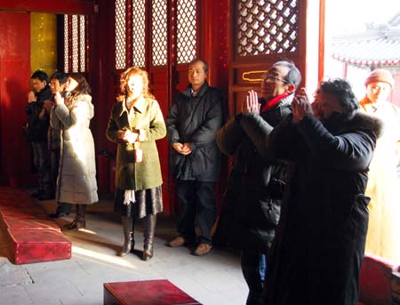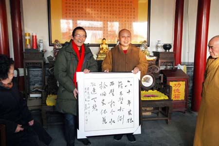 2月20日,著名表演艺术家游本昌先生到大慈阁参观,受到保定市佛教协会会长真广法师的热烈欢迎。