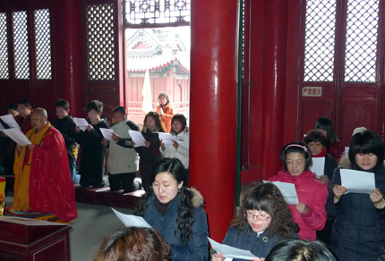 正月初五,真觉禅寺(大慈阁)举办“百子登阁福连来群友新春联谊会”。参加此次活动的群友在一起交流心得与分享,然后登阁祈福,素斋、一起合影留念。真广法师主法为参加联谊会的群友做新春祈福,并为部分群友举行了皈依。