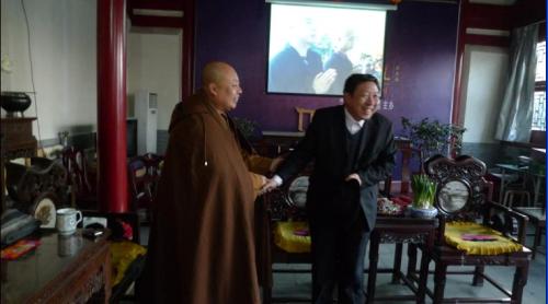 今天早晨,市民宗局的马局长早早的来到大慈阁,和师父互致新春的祝福!