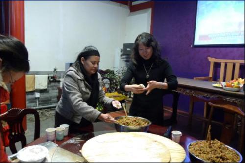 来自菲律宾和韩国的两位河北大学的外教学会了包饺子
