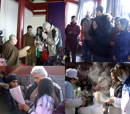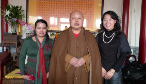 来自菲律宾和韩国的两位河北大学的外教和师父合影,并互助新年快乐!