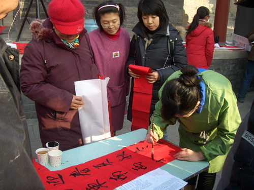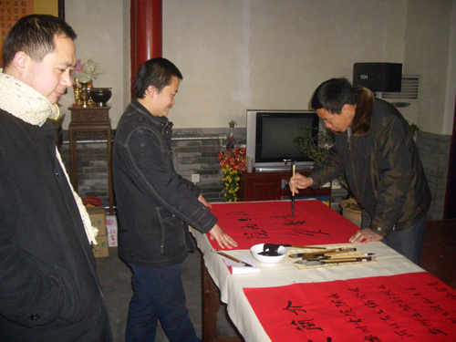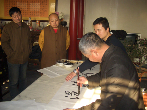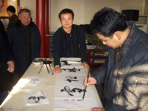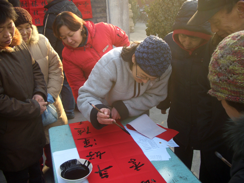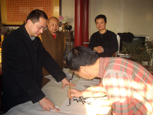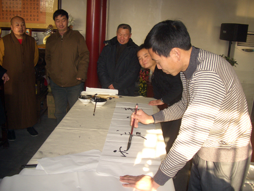 “喜看旺鼠财千份,欢握金牛笔一耕”。2009年1月15日上午,保定市佛教协会、保定市佛教文化研究院,邀请河北省书协会员、安州书院院长孙玉春先生,河北省书协会员李林吉先生,安州书院副院长、河北省书协会员田战军先生,安州书院副院长郝为民先生,河北省书协会员燕凯先生,河北省书协会员鹿女士,河北大学书画研究生张瑞等众多书法家在大慈阁义务为群众书写春联、福字。