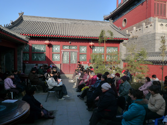 讲坛外的居士聆听法语