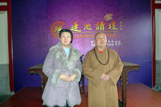 真广法师与著名画家虞丹青女士在“莲池讲坛”合影