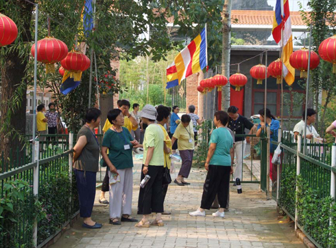 来自五湖四海的居士见面时亲切问好