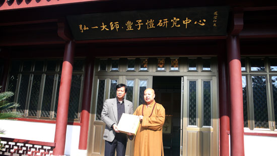 2008年11月11日,真广法师参观了浙江师范大学、弘一大师.丰子恺研究中心,并与研究中心主任陈星教授亲切交谈