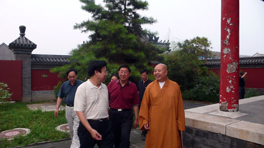 河北省民宗厅张兴堂副厅长、朱燕增处长、到保定市佛教协会及大慈阁检查指导奥运安保工作,保定市佛教协会会长真广大和尚、保定市民宗局李同聚局长以及南市区政府有关领导陪