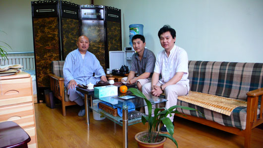 保定青年画家田河星(右一)拜访真广大和尚