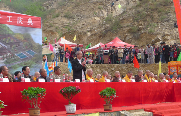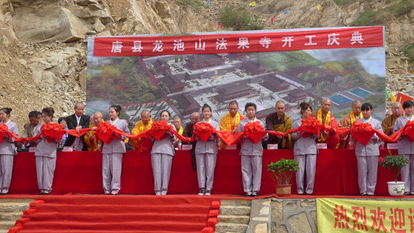 法会开始,法果寺住持显净法师法师对各位领导、法师的莅临表示由衷的欢迎和感谢,唐县县委统战部贾增会副部长、唐县佛协会长尊行法师先后致辞,王长革秘书长代表市佛协和会长真广法师对大雄宝殿奠基表示祝贺。