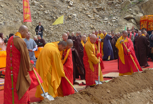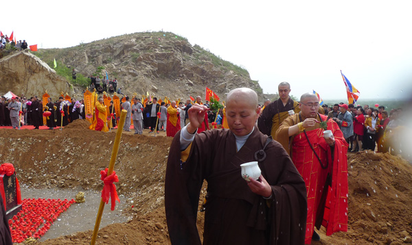各位法师进行奠基培土