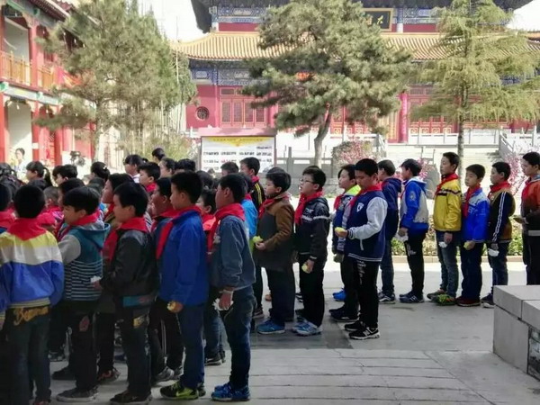 保定佛教资讯:2016年4月1日,河北蠡县辛兴镇梁家庄小学全体师生,齐聚万佛寺古莲台烈士碑前,缅怀一切为国捐躯 战死沙场的过去现在一切英烈,为烈士们鲜花扫墓。