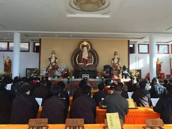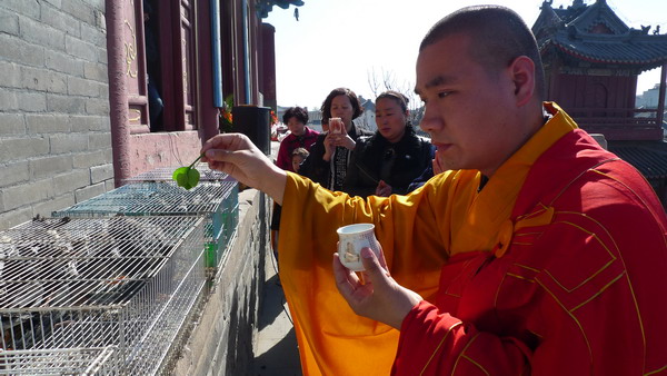 真觉禅寺(大慈阁)举行庆祝活动,图为道悟法师正在洒净放生