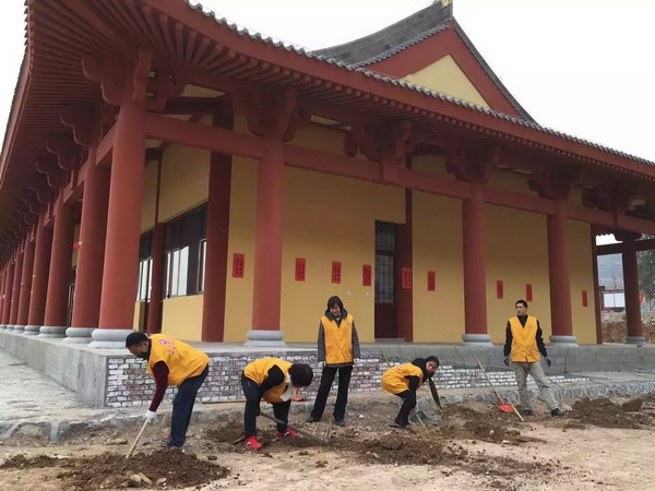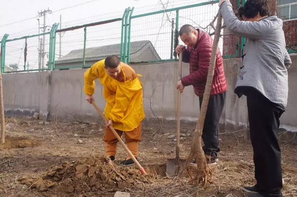 清苑区观音寺僧众开展的植树活动