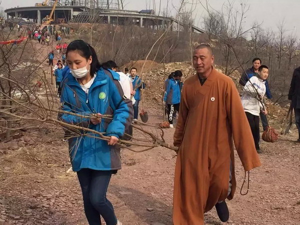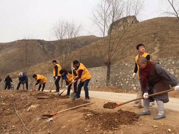 3月12日,又到了一年的植树节,为净化环境美化、绿化寺院,我市各寺院场所各自开展了植树活动。尤其是今年的大佛光寺,市佛协会长真广法师呼吁:“地需要绿,天需要蓝,来凤凰山大佛光寺植树吧!”来自公司、学校的团体纷纷来到寺院开展义务植树活动。清苑区观音寺、徐水区兜率寺也在寺院及周边空地开展了植树活动。