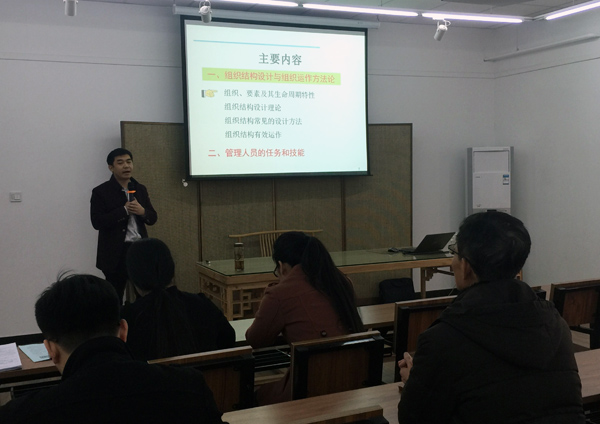 2016年2月12日,在保定大学科技园“大慈十方书画院”,“莲池讲坛”继续邀请管理学刘博士讲授《组织结构与管理者的任务与技能》,刘博士重点讲授了组织结构的重要性,以及怎样使组织正常运作,并对组织结构的五要素一、领导力,二、管理架构,三、结构、人和文化,四、流程进行了详细解释。