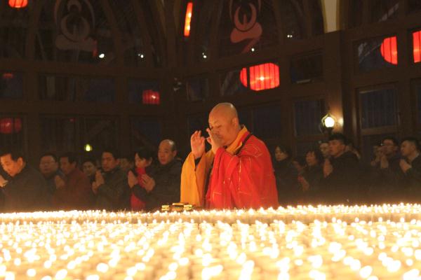 供灯祈福法会晚六时正式开始,市佛协会长、大佛光寺创建人真广法师主法为大众祈福,真广法师在开示中感谢为佛光寺的功德主们,感谢他们的爱心奉献,才有了大佛光寺今日的宝殿庄严。也正如星云大师在开光时所讲的那样,“寺院的建设是功德无量的事,它会起到一种无言之教,使见到它的人都能生起善念,”希望更多有缘人支持大佛光寺。祝愿世界和平,与会大众福寿绵长,南无消灾延寿药师佛。随后,有常住的法师们唱诵药师灌顶真言,参会大众点燃自己的那盏心灯,将自己的心愿在佛前诉说祈愿。