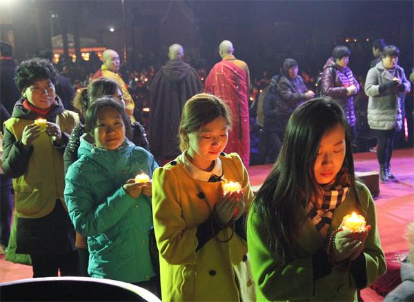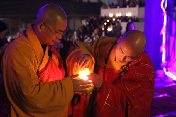 灯灯相续,心灯相传。点燃一盏智慧灯,遍照三千大千界。在寂禅法师为大众讲解了供灯、传灯的意义之后,伴随着庄严的药师佛赞音乐声,传灯正式开始,首先由寂禅法师在佛前点燃了一盏心灯,逐次传给各位法师、居士。 大家依次相传,灯灯相续,现场充满了无限的温暖希望与欢喜祥和。