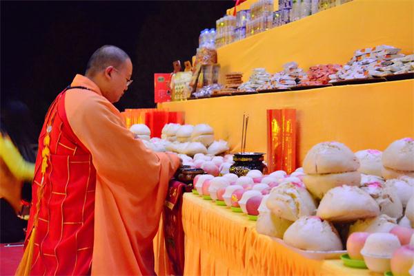 凌晨四点半,斋天法会准时开始,住持明月法师拈香礼佛,大众及斋主至诚祈请,虔诚诵经,整场法会如法如律,清净庄严。