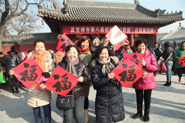 保定佛教资讯:2016年2月1日,保定真觉禅寺(大慈阁)举办了第八届迎新春“赠福”送春联活动。市佛协会长真广法师、河北省书协副主席吴占良先生和来自保定市各县以及市区的的书法家和书法爱好者欢聚一堂,挥毫泼墨,喜迎新春。