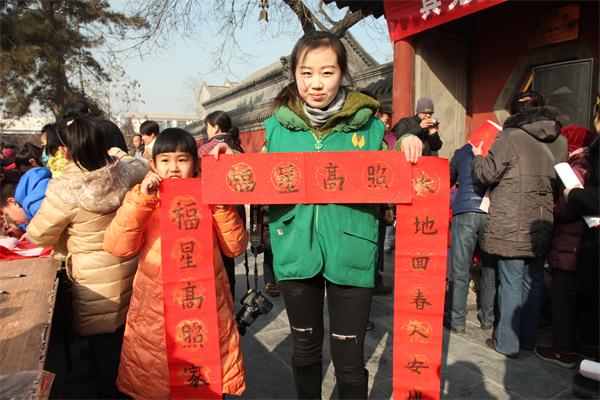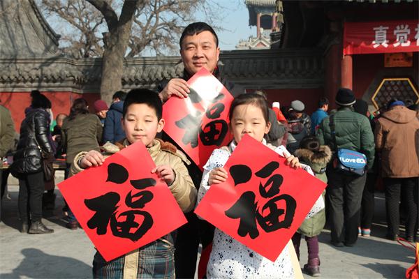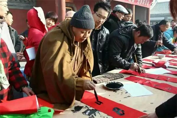 在大慈阁山门前的广场上,会长真广法师亲自书写春联和福字为义工菩萨们、社区居民提前送上了春节的祝福,同时其他书法家也各抒情怀,各展风采。广场上挤满了兴高采烈的人群,大家在冬日略带暖意的阳光下,来到寺院拿到自己喜欢的春联还有祝福。