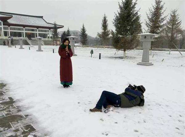 保定佛教资讯:2016年1月31日,随着一场严寒中的小雪的到来,保定顺平大佛光寺庄严辉煌的殿堂,在积雪的覆盖下显得愈发的令人神往,那极富大唐建筑风格的殿堂,吸引了很多摄影爱好者,大家踩着积雪顶着寒风来到大佛光寺来拍摄雪后美丽的寺院景色,模特和摄影师们也成了一道景观。