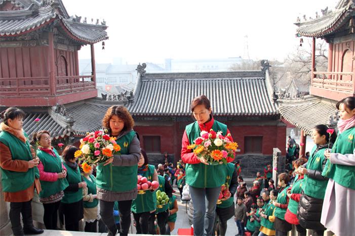 保定佛教资讯:2017年3月16日(农历二月十九,)一个喜庆的日子,是大慈大悲的观世音菩萨圣诞之日,小鸟在已然春意盎然的枝头欢快的鸣叫,大慈阁的院中大众来来往往,尽是来献花、礼拜充满喜庆的笑脸,真觉禅寺(大慈阁)隆重举办了庆祝观世音菩萨圣诞法会,由住持道悟法师主法,并赞叹观世音菩萨的无量功德。