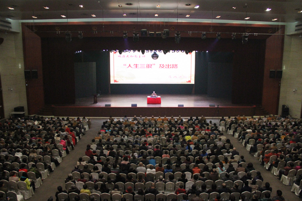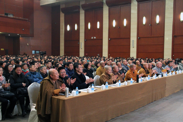 上午九时,讲座正式开始,明海大和尚就大家生活中常遇到的问题,诸如“很忙、很累、很烦,”指出:忙-----时间上和内心的感受,累-----身体上的感受,烦-----心理上的感受,并对其进行了逻辑性很强又深入浅出的讲解,诙谐详尽的剖析了大家为什么“很忙、很累、很烦,”并指导大家用佛教的苦、空、无常对这种现象进行观察,以期达到树立正见,在正见的指引下,产生正确的价值观、人生观、世界观,才能在当今的信息、经济大发展中不至迷失自己,在不为自己求安乐,但愿众生得离苦的利他精神指引下,逐步得到本属于自己人生的安详、自在,在奉献中实现自己人生的最大价值。