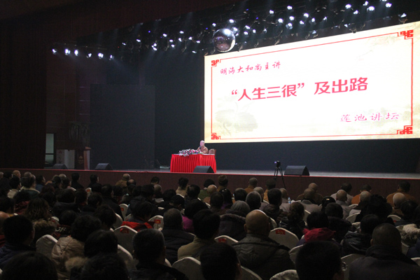 明海大和尚的精彩演讲,时时博的大众热烈的掌声,讲座现场秩序井然,大和尚还和现场观众进行了互动,回答了大家感兴趣的问题。