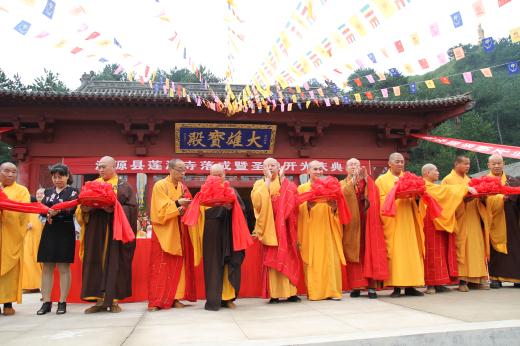 保定佛教资讯:2015年8月24日,保定市涞源县莲池寺举行落成暨佛像开光大典,佛光普照,来自各地高僧、大德及信众云集与此,出席法会的领导有:保定市民宗局甄彩霞处长、涞源统战部郝志华副部长等,法师有:保定市佛教协会会长真广法师,副会长明舟法师、道泓法师,江苏隆悟法师及本地法师50余人,市佛协秘书长王长革,副秘书长梁浩应邀出席了庆典,约300余人参加了庆典法会。