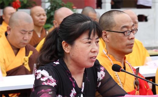保定市民宗局甄彩霞处长出席典礼并致辞,她代表民宗局祝贺寺院的重建开光,希望寺院在德定法师带领下,发扬佛教爱国爱教的优良传统,为创建和谐社会和实现强国梦做出积极的贡献。