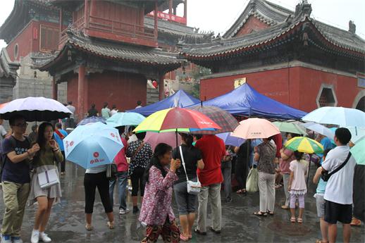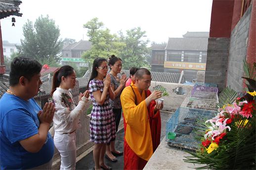 接下来又举行了放生、皈依等佛事活动,阴雨连绵的天气,并没有影响人们来寺院参加庆祝活动的心情,大慈阁小院依旧占满了上殿的信众和游人,彼此的一个微笑、一个点头,都传达着无尽的善意。