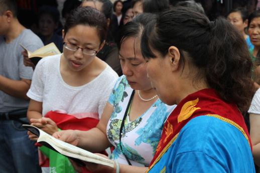 寺院义工搀扶行动不便的善信