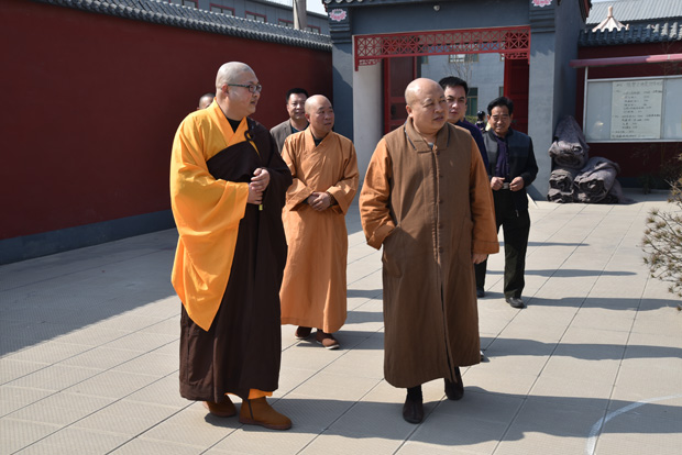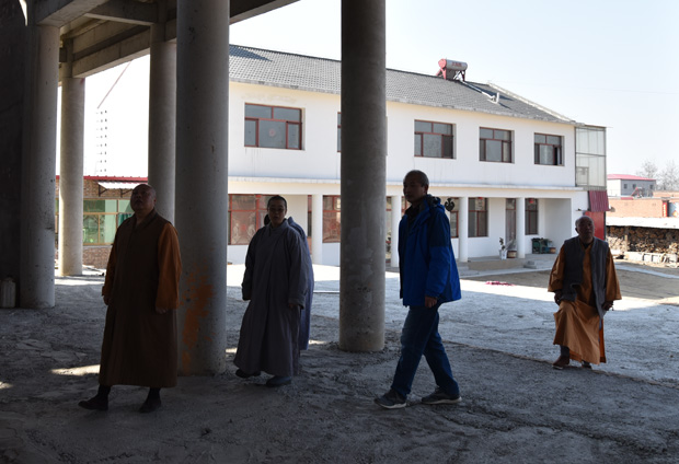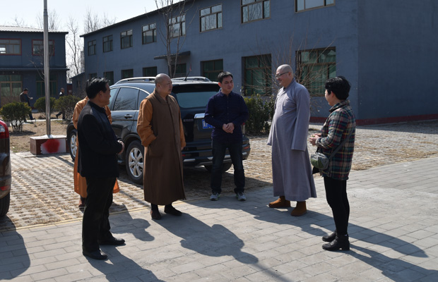 来到楞严寺,住持妙净法师带领几个弟子来迎请真广法师,妙净法师经过多年的筹划努力,大雄宝殿于2015年奠基,经过一年的建设,大殿主体框架已形成,其因地势而建坐东朝西,别有特色。在座谈中,妙净法师向真广法师讲述了大殿建设的种种问题,让人无限感慨出家法师这样呕心沥血的为社会、为佛教、为众生在做事,为什么有的人还昧着良心坑害寺院。真广法师赞叹妙净法师所发的大愿心,并嘱咐其弟子要好好学习,要发大愿,要有担当精神,传承佛法,也为师父分忧。