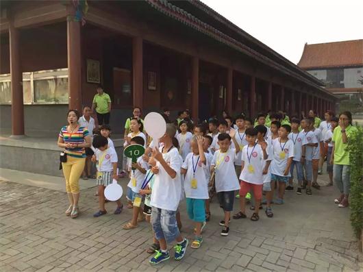 此次欢乐营将重点体现“寓教于乐”的宗旨,主要内容有加强小朋友们互助互敬的各种游戏、传统文化学习、礼仪学习、中医常识、武术锻炼等,开营第一天,活泼热闹的分班及自我介绍后,由观音寺常住王一居士带领小朋友参观了观音寺各殿堂及设施功能,通过参观,小朋友们增加了对佛教文化的初步认知。