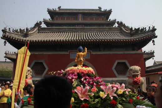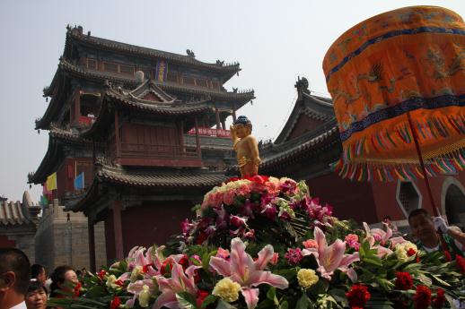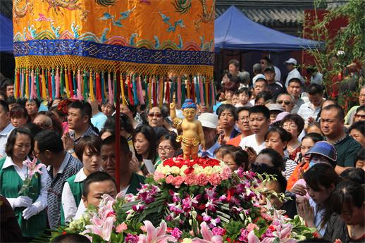 大慈阁内,庄严的道场挤满了喜悦的人群,法会开始,两位歌手首先献唱了两首赞颂佛陀的歌曲,随后,“太子”圣像在鲜花仪仗及万众瞩目的簇拥下,从“直指”被请出后绕寺云游,在街上行人和车辆主动让路,很多人合掌礼拜“太子”佛陀像,“太子像”进入山门,经过星云大师亲自题写的“真觉禅寺”匾,信众们合掌称颂南无本师释迦牟尼佛佛号,寺院内霎时充满了吉祥喜庆的氛围,直至“太子像”被供奉在寺院内的大殿内。