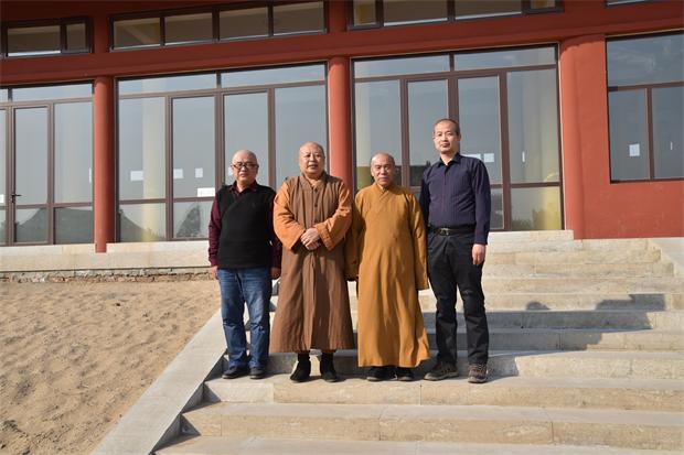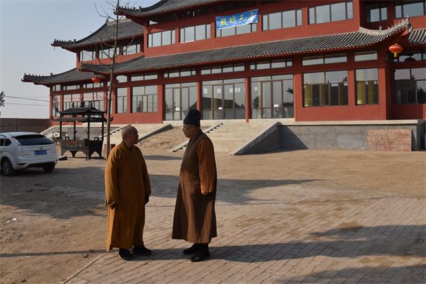 在望都虚云禅寺(原大善国寺),会长真广法师一行参观了寺院新建的庄严殊胜的普光明殿,对住持明舟老法师将佛教建筑的表法因素与时代需求因素相结合的建筑理念,大加称赞,并就寺院部分建筑格局的规划提出了自己的看法和建议,明舟老法师感谢会长真广法师的关心,并欣然采纳了真广法师的建议。在茶话中,两位法师还就保定佛教的发展和未来进行了交流。