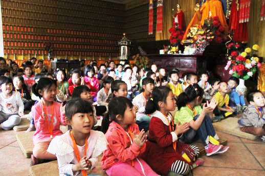特别感谢为此活动的广大义工,感谢他们无私的奉献,有的义工孩子没人看管,只好把孩子也带来寺院,寺院活动筹备组为此专门成立一个临时幼稚园,小朋友们在一起学儿歌、做游戏,短短几天有的小朋友竟然成了难舍的伙伴,寂禅法师专门看望并和这些小朋友一起互动,天真无邪的小朋友的发言,时时令大家捧腹大笑,小朋友们为法师们表演了刚学的歌曲和弟子规,这也是此次法会的一道独特风景。