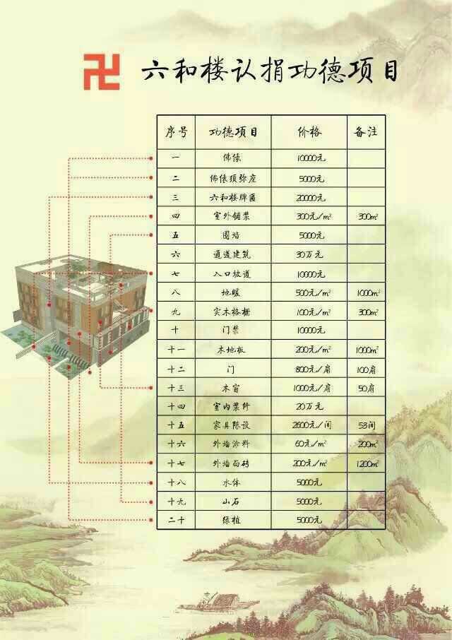 今遵循师父真广法师“建寺、安僧、弘法”的理念,为令诸行者依止此房舍修观及禅诵,亦令四大得以将息,故观音寺常住兴建僧团六和楼,保定赵志仁者与志同道合之善友发大心助建六和楼以安僧办道。此新僧寮位于传灯楼之东。规划设计图纸已初步拟定。诸希欲安僧建寺之善信可以共襄胜举,积福消障,功德无量!