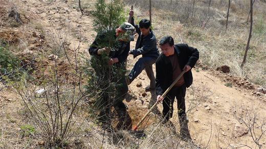 在山坡上的植树现场,大家忙得不亦乐乎,有的扶树、有的培土,两人一组协作进行,每棵树都按照程序严格种植,确保成活,现场呈现出一派热火朝天的劳动场景。大家在植树过程中切实感受到了劳动的意义,以自身实际行动参与“绿化共同家园、促进生态环境改善、利益众生”的活动中,活动结束后,会长真广法师热情款待了大家,并和各位领导就佛光寺的建设、绿化、后期管理等问题进行了交流。