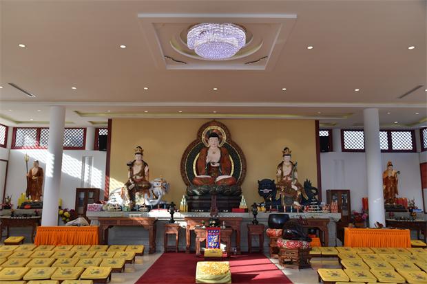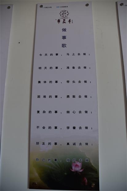 随后,如光法师陪同各位领导参观了普光明殿、禅堂、客堂、斋堂等殿堂,在参观过程中,大家看到寺院从大至殿堂,小至行廊,及至山崖中被保护的一颗小灌木,都被赋予了时代的特征和佛教殊胜的表法意义,令人耳目一新。