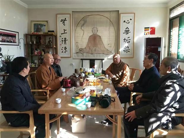 在座谈中,如光法师向董局长和会长真广法师介绍了寺院当前的情况和将来的发展思路,会长真广法师赞叹如光法师开展的各项工作“中规中矩”,依佛陀教诲而行,处处用心,以身示教。董少卿局长在交谈中对如光法师为社会、为佛教所做的大量有益工作,尤其是在环保和文明敬香对信众的引导方面给予肯定和赞扬。