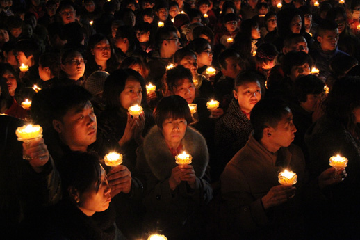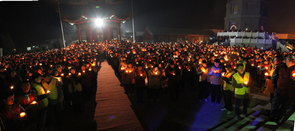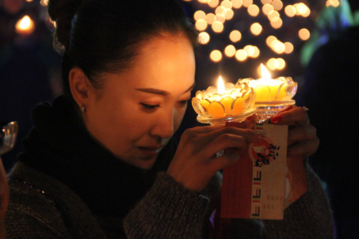 壮观的供灯法会现场