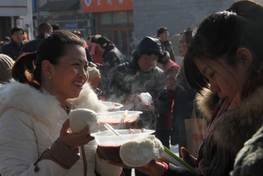 佛成道日法会是佛教里一个重要的法会,保定各寺院每到这天都要熬制腊八粥,与大众结缘,其在佛教里的意义为感恩释迦牟尼佛悲悯大众之心,并激发自己的慈悲心,还寓意来年风调雨顺、五谷丰登。位于保定市中心的真觉禅寺提前数日便进行腊八法会的各项准备工作,寺院义工在早晨四点不辞辛劳便开始熬制,真觉禅寺的腊八粥由于选料精良,又用铁锅木柴熬制,大火、小火控制得当,所以熬制出来的粥分外可口好喝,深得大众喜爱,好多外地人专门开车来寺院品尝腊八粥。今年寺院还专门熬制了“无糖粥”以满足少部分人需求。